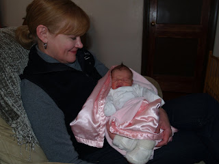 Elizabeth Carolyn Jane is five days old today. And rather than post more sleeping baby photos, we have awake baby photos! It is amazing how quickly lives can change and we are thankful for all of the changes since Elissa’s arrival . Hunter spends time before and after school holding his baby sister and talking to her. He is already coaching her on saying “Hunter” and “football” as her first words. Nathan takes the early evening shift and I take the middle of the night shift with Elissa. Last night she had Nathan pulling out all the stops from the baby swing, nuk, bouncer, rocking, walking, swaddling…Nathan did it all for his daughter and eventually she snuggled down on his chest and fell asleep. And the sweet baby slept and slept–for five hours and I only checked on her twice to make sure she was okay! Now I cannot imagine that will happen two nights in a row but we are hopeful. Having my mom with us this week is great. She makes awesome meals, took Hunter to a basketball game, helped him with his science project and study for a couple of tests and you’ll see by the picture above that she gets her time holding her granddaughter.