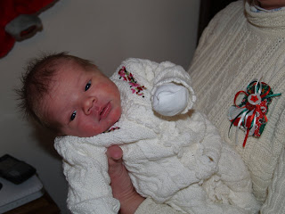 Our Christmas gift, Elizabeth Carolyn Jane all dressed up as Santa’s helper and even in her brother’s stocking!