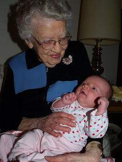 Today Elissa met Iris, who is her great great great aunt…5 generations. Iris was born in 1905 and Elissa born in 2007. Yes they are indeed 102 years a part in age and became fast friends today. Iris was the sister to Elissa’s great-great grandfather, Odin. She is a very special aunt and friend to our entire family. The white sweater was knit by Iris for me in 1979 and my mom saved it. Iris was tickled to have Elissa wear it. We are truly blessed.