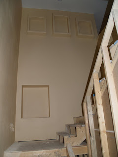 Siding, patiently awaiting to be put on the house. Read the fine print my Canadian friends…it is made in Canada.Family room…cabinets are for the guest bathroom