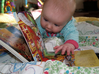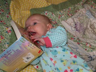 Hunter is a diligent reader both of the weekly Sports Illustrated issue and just about any classic book he is given by his Mama Jane and Great Grandma Nola. Grandma Nola sent us a box of a couple books for Hunter a few weeks ago and he read them within the week. Elissa chews on her books but I’m sure she is already reading silently to herself! This is my blog so I can brag.