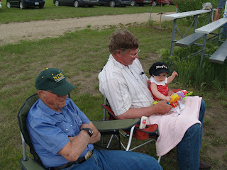Elissa has superb judgement when it comes to endorsing a cereal grain herbicide. Maybe with a little coaxing from her Grandpa Fred and Mommy. Hunter had both Great Grandpa Sonny and Grandpa Fred trek across the state to be at his game last night. Loyal fans. Batter up!