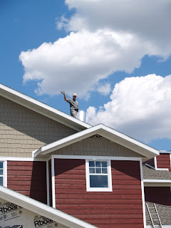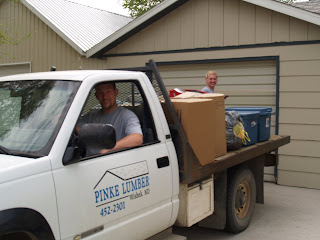 Nathan hauled this in the house tonight to install it. He said it is his gift for me…hardwood flooring from Norway. Our new home…unfinished but we are happy to be home. Yes that is Nathan and his dad on the roof on Sunday afternoon…finishing the chimney. Exciting times when the microwave was installed. Local appliance couple only delivers to the garage. And thankfully we have someone who can install. Dad–you would be in trouble if your appliance people did not install. Happy dance C’mon on over for a visit Hunter says “I love vacuuming saw dust every day”