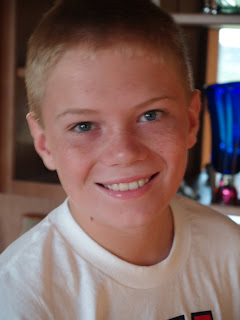 Happy Birthday to Hunter today! And today is his first day of 5th grade! As you can see on the picture he got a new basketball this morning which he was proudly palming. Hunter had a physical this week for his upcoming year of sports and barefoot he is 5’5″ tall. Plus he wears a size 11 men’s shoe and now needs men’s clothing. No more little boy.