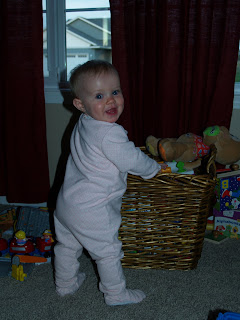 Today Elizabeth Carolyn Jane is 9 months old. She is our Elizabeth, Elissa or ECJ. This past month has been full of exciting changes for Elissa. Crawling, pulling her self to stand, standing one handed and then creeping around the edges of furniture. Crawling is hilarious because it is actually a modified version. We call her “Gimpy” often as she crawls because she really is trying to walk/crawl and drags one leg behind…I guess I actually need to put to video for you to get the full understanding but it is quite a sight. Elissa is full of life, cheer, excitement and as my mom said this weekend is a “real tiger” at 5:15AM when she has decided it is time to be awake for the day. Regardless of the time of day, she is a constant family joy. Her brother Hunter can make her laugh at any moment and she affectionately calls him “Hata”. A new favorite hang out is the local small town park- near our house and full of swings and slides. You can hear Elizabeth’s sqeals of glee echoing around town when we are there.9 months on 09/09