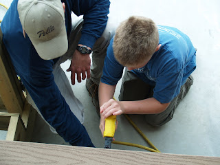 Elizabeth’s first time on the porch A new place to play–our new front porch…with the hat I thought would be cute for a picture but ended up being a more fun toy. Sunday afternoon porch finishing Hunter had fun learning to use the nail gun. My mom bought some fall decorations last year on sale…specifically for the porch (because certainly I don’t have the “decorating” gene). So as soon as the railing is on I’m going to get some decorations up and hopefully soon have some furniture to sit on and enjoy the peace and quiet of the prairie.