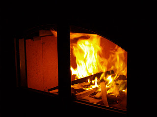 At our house, Nathan has the new fireplace going. This was our first fire in it last week. Cozy and warm.