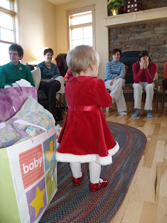 Elissa’s onesie is showing out the bottom of her dress…it was at TJ Maxx bargain I picked up that says “All my mommy wants for Christmas is a Silent Night”. Could not be more true.