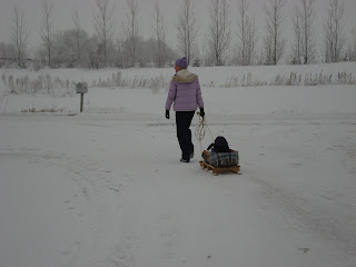 This morning it has warmed enough from the deep freeze we have been in for weeks for Elissa to venture out on her first sled ride. She was fully bundled. We walked from my parent’s house to my grandma’s house…just down the road. Auntie K snapped a few pictures. It is a beautiful and peaceful morning.