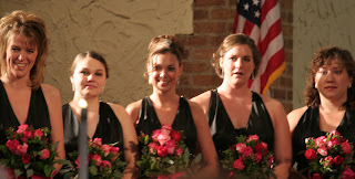 Beautiful and joyous Katie as the bride. And I love my spray tan look!
