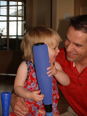 A living room lesson for Elissa from Daddy on t-ball after brunch today. It is sunny, warm and windy. The ball would blow off the tee outside. So E’s first hitting lesson was indoors. Then we all ventured out play in her “house” on the porch. I will post pictures later of her play house on the porch.