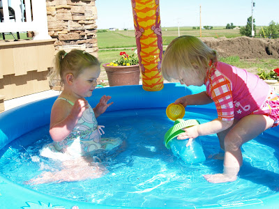 Emme is two years old and has a clear vocabulary. Elizabeth speaks many words and short sentences. When we were sitting on the porch as the girls were playing “house” after their swimming, Elizabeth announced “Ah dne” several times to Emme, letting her know that she was done playing with a specific toy. Emerson looked at her and finally guessed what Elizabeth was saying by saying “Hot dish?’. It was quite funny.