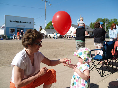 Following the parade, we found the best cheeseburgers, cheese curds, mini donuts and malts. (And then I took four Gaviscon but it was worth a little heart burn!) Hunter gearing up to throw a Tootsie pop to his sister.