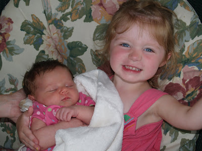 Yesterday, Elissa, Anika and I drove to visit Nevaeh and her mommy Sami. The moms got to visit. The girls played and did their share of very supervised baby holding. Nevaeh is going to become a big sister this winter so she was practicing. Look at how quickly these girls have grown…from when Miss E was four weeks old. Tomorrow Anika will be four weeks old!