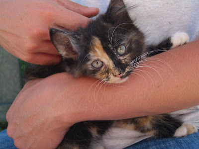 My mom is in the house very busy making sixteen homemade pies for our annual farm tour tomorrow. The company I work for brings employees for a crop tour. My dad lines up several speakers and the group tours many fields of crops. At the end of the educational tour, everyone comes in my parent’s house for pie and coffee. I, of course am documenting the pie making today through my camera and video and learning from my mom. We are keeping Busy Bits (Elissa) out of the kitchen as much as possible which is easier with new kittens on the deck. We might NEED this kitty at our house Daddy. Please? Or as E says “Pleezb?”