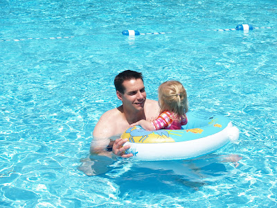 E wasn’t so interested in floating lessons from Daddy in the “big” pool. She preferred getting in and out of the baby pool on her own.
