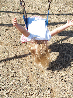 Hunter had a 10AM game and a 2PM game. That led to a lot of time in between games to kill! And we were still 45 miles from the closest mall, Starbuck’s or Target so we stayed put. My parents were there and we all had lunch together at the local cafe. Then it was play time at the local school playground for Elizabeth. “Mayme” and she created the game “airplane” on the swings.