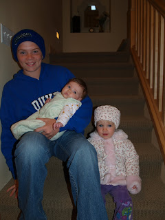 Anika was just wondering what all the hoopla was about as she was snuggly in her blanket bag and would have liked to be sleeping. But her sister said “Ahda wake!” enough times that Anika got in on our morning routine. Hunter got in plenty of hugs before he left for school.