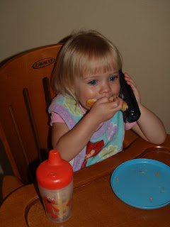Gma Carol brought us two fresh kuchens recently and Elizabeth wanted some “pizza” for her bedtime snack. I finally figured out it was not pizza she wanted. She wanted kuchen. I told her as she pointed to it on the counter that it is kuchen, not pizza and she said “Yeah! Houken pizza!” So now we call it kuchen pizza at our house. Mayme called during the kuchen pizza snack and our chatty girl keeping chowing down while talking to her Mayme.