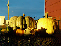 Our warm summer like September dashed away and cold October arrived with below average temps and wind. Our pumpkins are cold this morning but tomorrow they will be literally freezing when the low temperatures will drop and my neglected potted plants will freeze. I brought a few geraniums into my office to keep for something to remind me of summer. Nathan instead reminded me they stink! We will see if I can keep the stinky geraniums alive. I still have about 150 bulbs to plant and I better quickly do that this weekend before I have completely missed the window and we have permanent snow on the ground. Permanent until next spring when it will slowly melt and then the bulbs will give us hope for summer again!