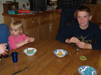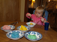 Even big brother Hunter thinks play dough is pretty cool, particularly mixing all colors together and creating snake-like objects.