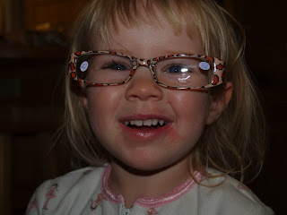 Oh goodness- she looks just like you with those glasses you had!! This is just too funny!!