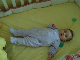 Anika didn’t mind chewing on her fist instead of jelly beans. She is a big girl now sitting in her Bumbo chair.