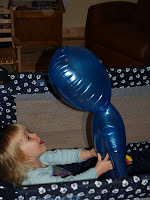 We have had what was Hunter’s former pack n’ play set up in our living room for over a year for Miss E to use. It is practically a piece of furniture for us now. Elizabeth can now crawl in and out of it like nothing though. It no longer serves its original purpose of keeping E in one place and safe while I had to start a load of laundry, take a shower or feed Anika. But she still loves her little space in the pack n’ play. She calls it “my pay pay”. E’s three favorite pretend play buddies are two babies and a plastic blow up alien (that Hunter bought with tickets from Space Aliens!). The alien is spooky and about Elizabeth’s size. She loves him and calls him “man”.