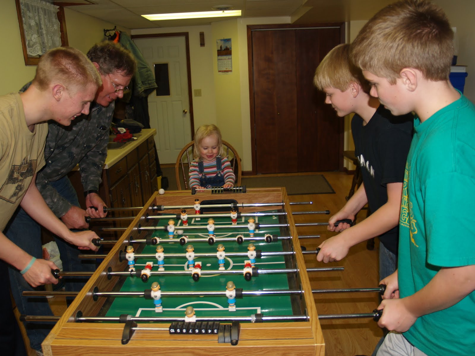 There are always foosball games and tournaments when my family gathers. Games lead to arguments as well as much laughter. Anywhere in the house you can hear shrieks coming from the basement when a game is going on. Give Miss E a few years and she won’t be satisfied as the score keeper and will be in the thick of action no doubt. The same will goes for Miss Anika. Not to worry for the girls though, big brother Hunter will make sure his sisters are well trained to become family champion foosball players.