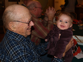 Despite the 445 miles Anika had driven with us in 24 hours to finally get to the farm for the birthday party, she was still all smiles which Great-Grandpa Sonny especially enjoyed. Our next grand birthday celebration will be in mid-January when Grandpa celebrates his 85th birthday. (We can skip right over my birthday and Aunt Holly’s to celebrate Grandpa’s!)