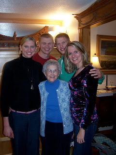 Above: Kirsti, Robbie, Joe and me with our “little” Grandma Nola.