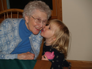 Elizabeth had spent the day at the farm with “Gamma Nola” and her “Mayme” (my mom). She was full of kisses and “bertday” greetings for her Great-“Gamma”.