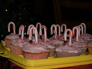 Love the pink cupcakes with the peppermint candycanes!! Looks like you had quite a party!! How fun.