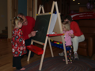 Rather than host a party this evening with a house full of kids, we just had Elizabeth’s best buddy Emerson and her family over for dinner plus Gma Carol, Gpa Eldon and Auntie Kirsti.