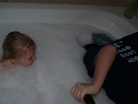 Miss Elizabeth did a little convincing of her brother the other night that he should try out her bubble bath. She kept saying “Too much bubbles in here! Hunter get in! Hunter NOW!” The “too much bubbles” were so much fun Elizabeth did not think Hunter should miss out on the experience.