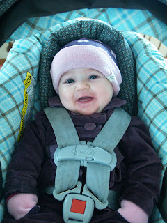Anika weighs about 17.5 lbs. now and has changed more in the last month than the past five combined it seems. Anika’s personality has developed. She is calm, content and smiley as she has always been but now has found her voice and “sings” and squeals daily to us. Anika is very close to sitting up solo but still is a little tippy and leans forward to support herself. She is interested in toys and grabs things and keeps herself occupied by playing more. She is much stronger and scoots around on the floor. She will “swim” on the floor and put herself very quickly up on her knees which we know means is crawling will come soon. Anika prefers to be on her tummy but now rolls back and forth from tummy to back and back to tummy so much that she roll her way across a room!