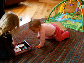 Anika officially started crawling last week on our vacation but I have been with out my camera to document it. Tonight Anika was into playing Candyland with her sister. Oh the adventures they will have.