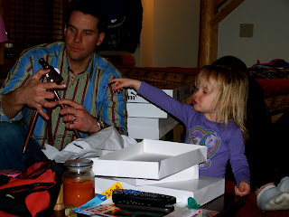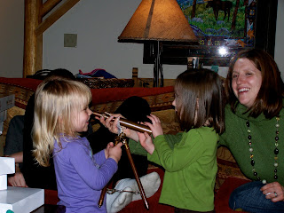 Elissa and Emma checking out one of Nathan’s presents, a mini telescope.