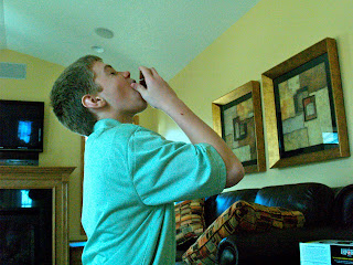 Hunter ate as much candy as he could as fast as he could.