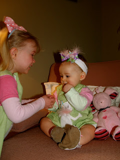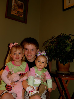 Hunter is an ideal older brother to the girls. He is helpful and truly enjoys playing with them. Actually he loves playing with Anika. He loves teasing Elizabeth. Anika loves both of her siblings and likes to watch all the action. Elizabeth is very “hands on” with her sister. Anika just goes with flow and hasn’t put up a fuss yet…but I imagine she will.