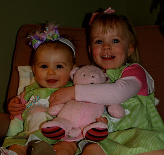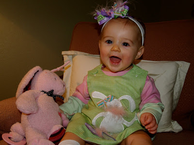 The girls wore matching bunny dresses but you cannot see much of them on the pictures. Trust me though, they are cute. Hunter is thrilled to not have to wear a matching bunny dress.