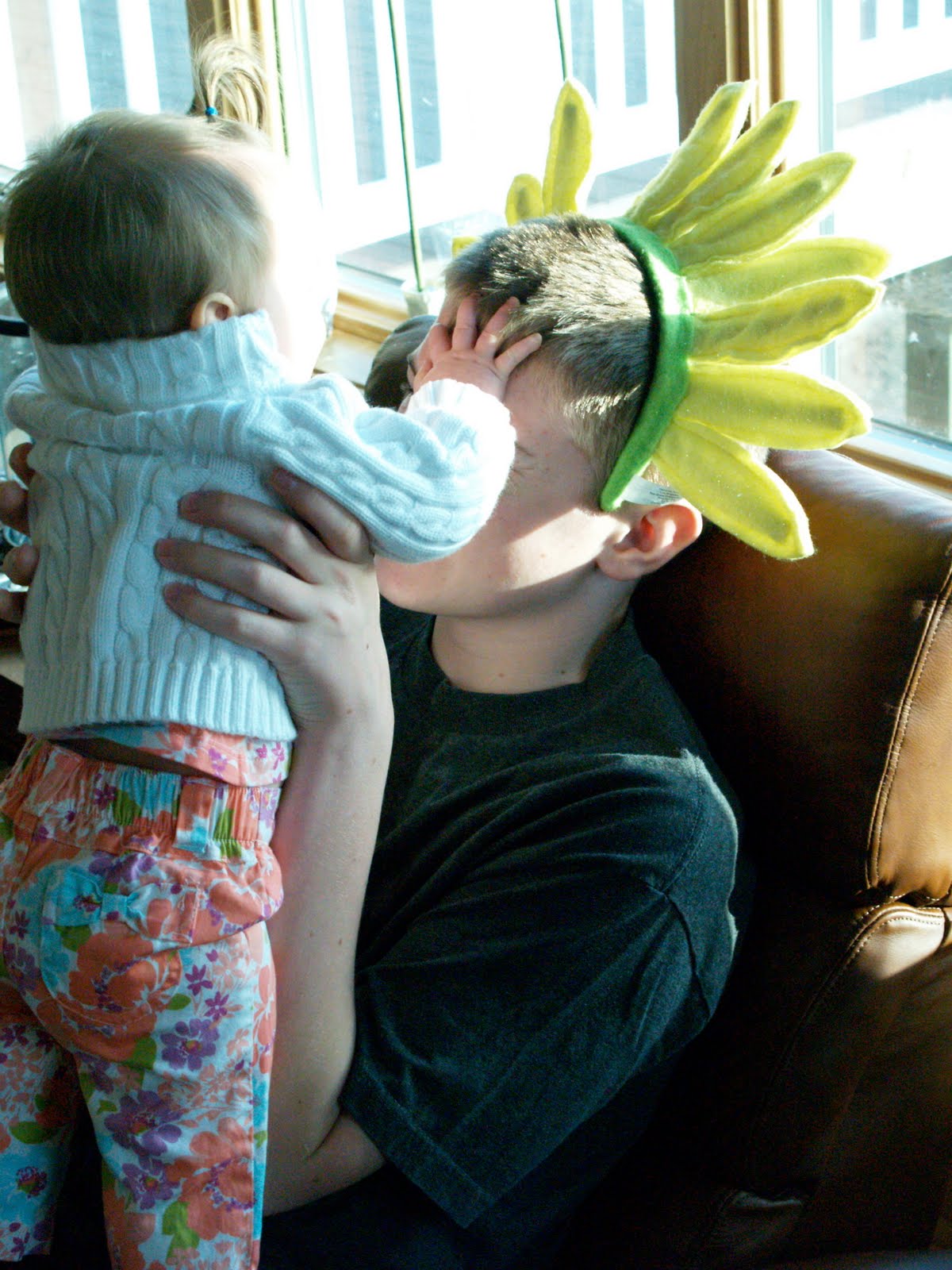 This morning E found the flower head bands and thought they would be good for she and her sister to be wearing.