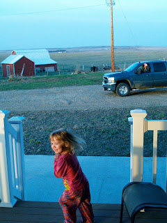 Our middle child is our early riser. Last night she was the last child to bed and is always awake first but the fact that she most always happy and smiling in the morning creates fun and joyful mornings. Above she is running onto the porch to wave “buh bye” to Daddy. Then we have dash through the house to the deck to wave again to him as he drives down the road to work. A happy morning routine.
