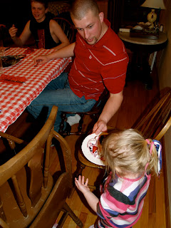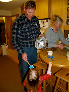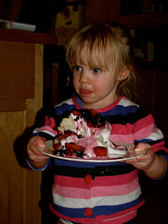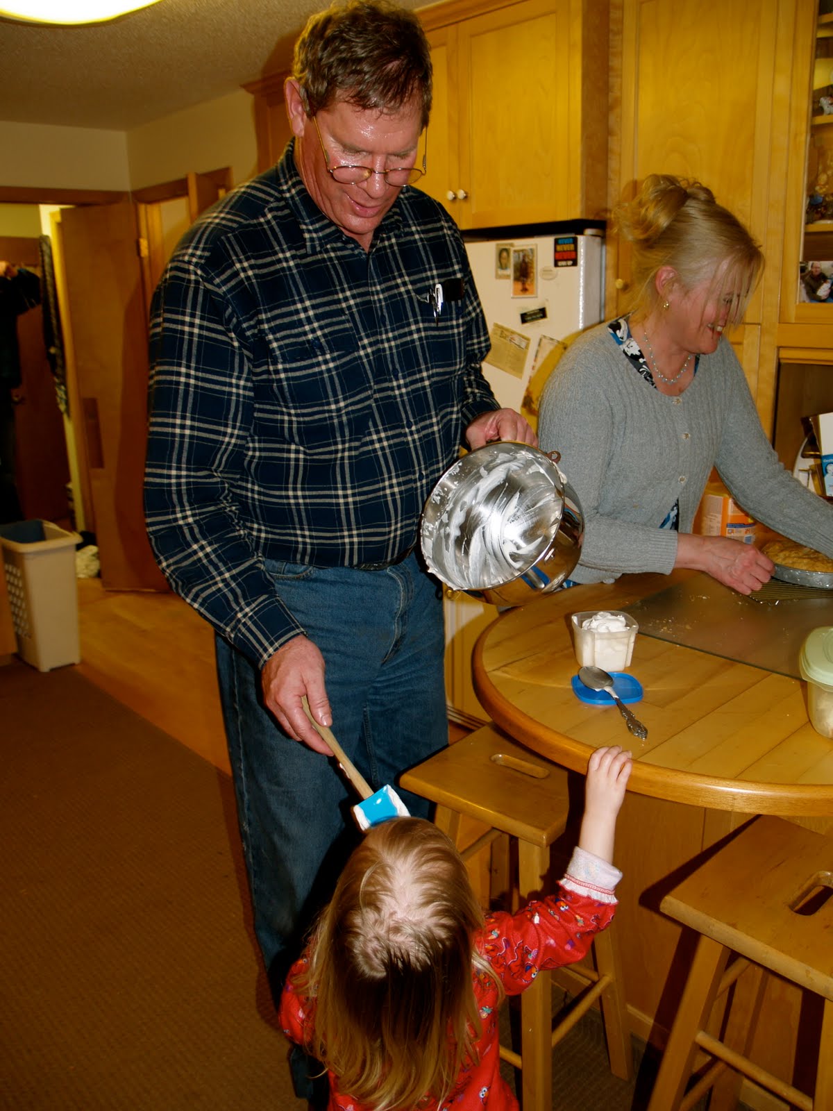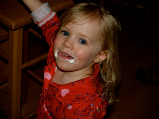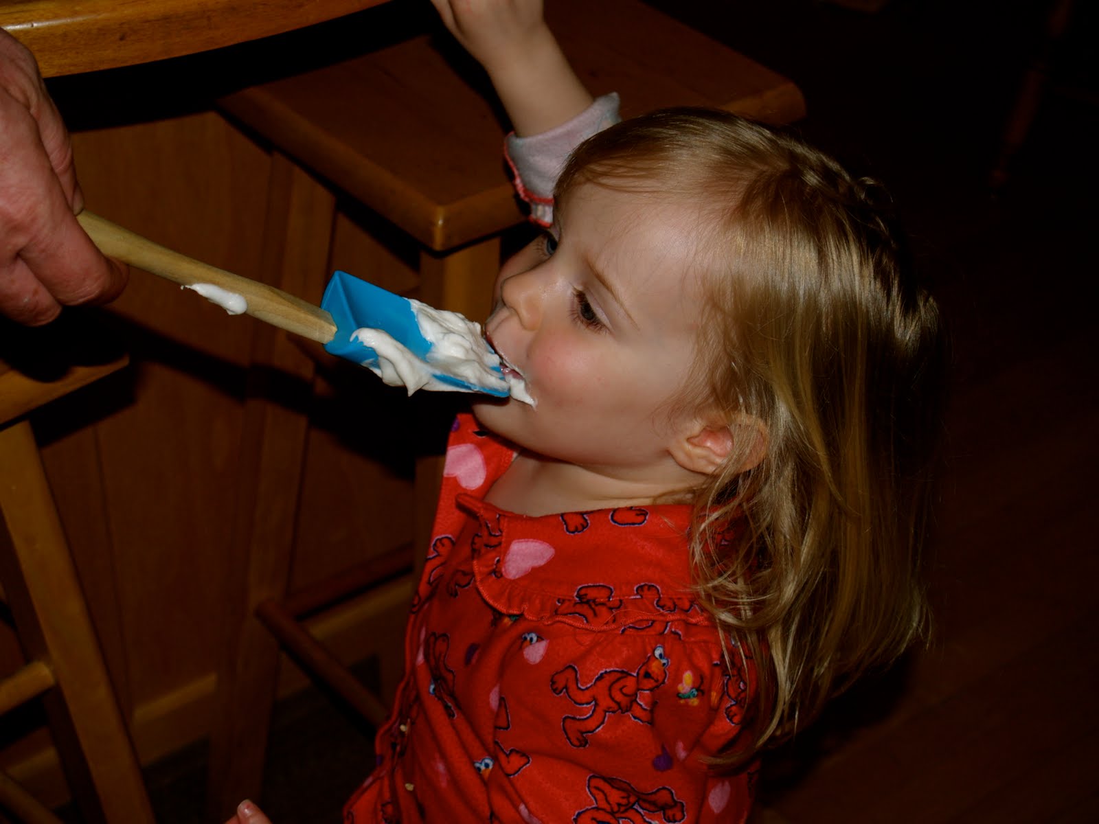 Then Grandpa Fred and Mayme were cleaning up the kitchen while the girls were getting ready for bed. And someone decided to start feeding Elissa whipped cream for a bedtime snack much to her delight.