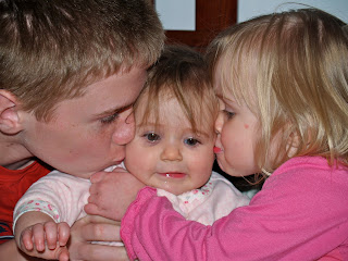 This was my attempt at trying to get all kids to look at the camera while Hunter held up what he is working on this week. Elissa is snapping her finger above her head because that is often what I do when I try to get them all to smile at the camera. Hunter is talking to the girls to get them to look at me. And none of it worked.
