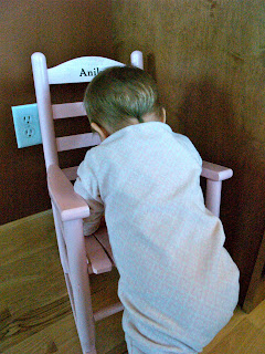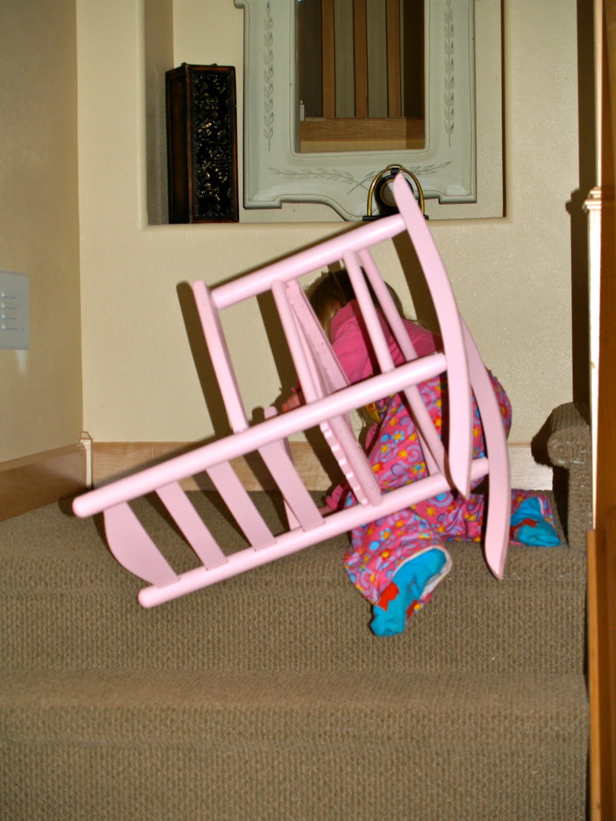 Miss E prides herself in getting into whatever it is Anika is enjoying at the moment. Last night it was taking Anika’s chair away from her. Miss E proceeded to carry it up the stairs.