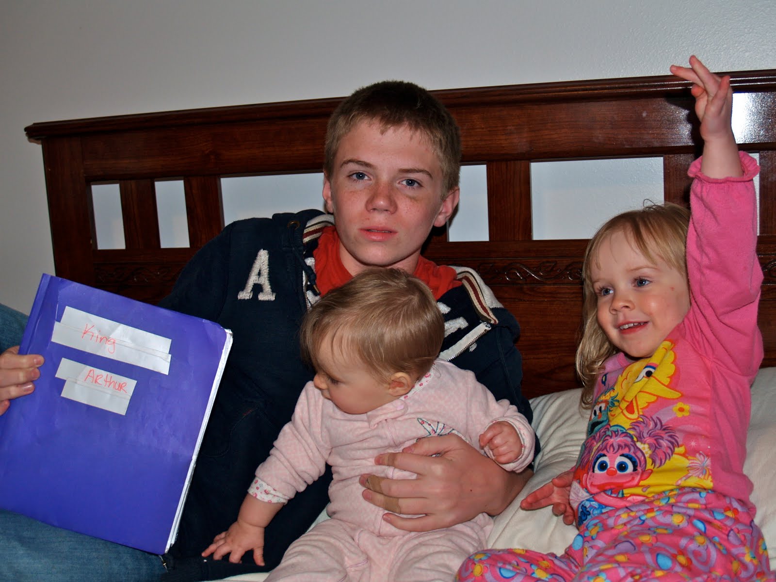 Hunter is busy memorizing 53 lines this week as the Missoula Children’s Theater is visiting his school for their week long annual visit. Yesterday he landed the role of Arthur in the King Arthur production.