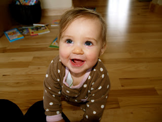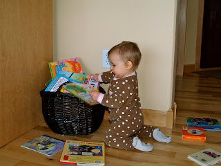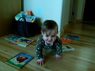 Anika spent Sunday and part of today in her jammies. She is on the mend now. A major change beyond her new love of pulling herself up to stand is getting into everything and emptying it. Finding books or toys are favorites!