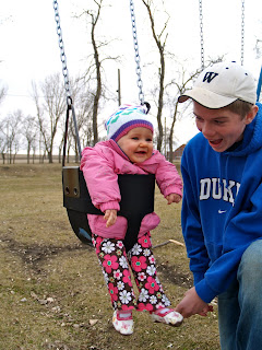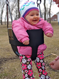 With the exception of a snowbank near where the ice skating rink was, the snow is gone. Anika experienced her first swinging as we have spent three of the past four evenings at the park.