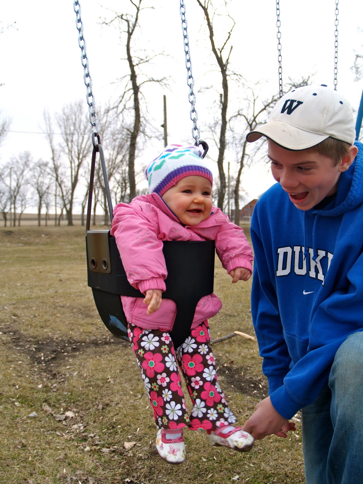 With the exception of a snowbank near where the ice skating rink was, the snow is gone. Anika experienced her first swinging as we have spent three of the past four evenings at the park.